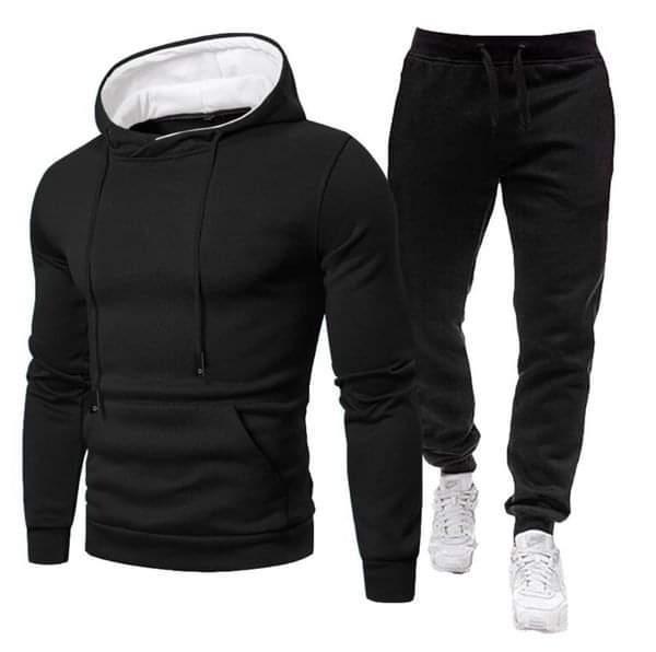 Stay sharp and comfortable with this sleek black two-piece tracksuit, designed for both performance and style. The hooded sweatshirt features a soft inner lining and adjustable drawstrings, while the matching jogger pants offer a tapered fit with a flexible waistband. Whether you're hitting the gym or relaxing outdoors, this outfit delivers effortless cool and all-day comfort.